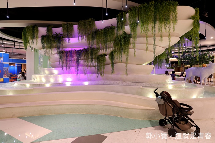 | 地下一樓的美食街廣場旁還有這麼一大座的地下水池,這邊也是很多人逛累休息的地方,聽著流水聲就讓暑意消散了一大半了,對於百貨公司或是購物商場來說,坪效是很重要的,尤其大江國際購物中心現在的人潮超級多,但是他門依然願意保留那麼多的公共藝術空間提供給消費者真的算是很不簡單! |