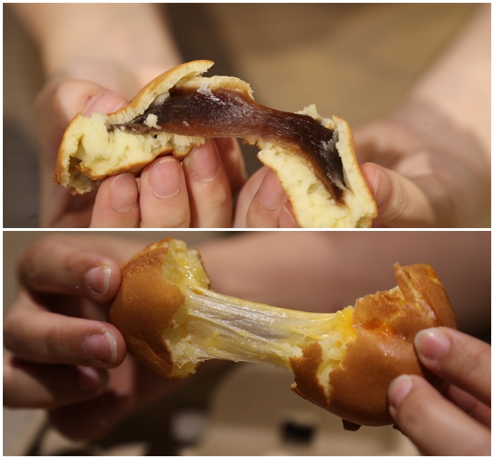 | 看看麻糬跟起司口味的牽絲程度都很恐怖,延展性一流,入口的麵粉口感也很棒,難怪可以在桃園造成風潮,大江的員工真的很厲害,立馬就邀請他們來大江快閃,不管是在客戶的服務度上還是舒適性跟創新性都跑得很快的購物中心。 |