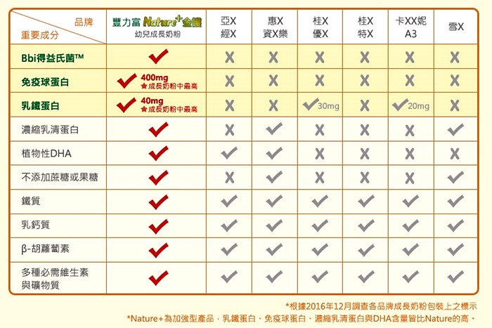一整個就是完勝的二張圖,每隔一段時間豐力富Nature全護就會公布最新的PK表,基本上豐力富Nature全護都是常勝軍,再來就是價位也超親民的,跟愛爾蘭的那一罐比起來足足差了一倍的價錢,養孩子很不容易阿,擁有專利成分以外價格又親民才是決勝點啊!!!! |
