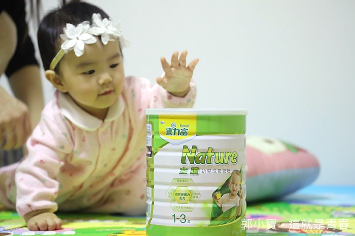 | 還記得那一天拿到豐力富Nature全護的時候,老婆第一眼瞄過還問我說,你哪來買到這麼大罐的綠巨人(翻白眼),金綠色的顯眼外表真的很吸引人,連我家Cola喝了半個月後問她ㄋㄟㄋㄟ在哪裡,她就會抬頭尋找這一罐奶粉,或是她肚子餓的時候也會主動爬到奶粉前看著它,我跟老婆一致認為認為豐力富Nature全護是一罐很適合寶寶週歲後一起陪伴孩子成長的好朋友!! |