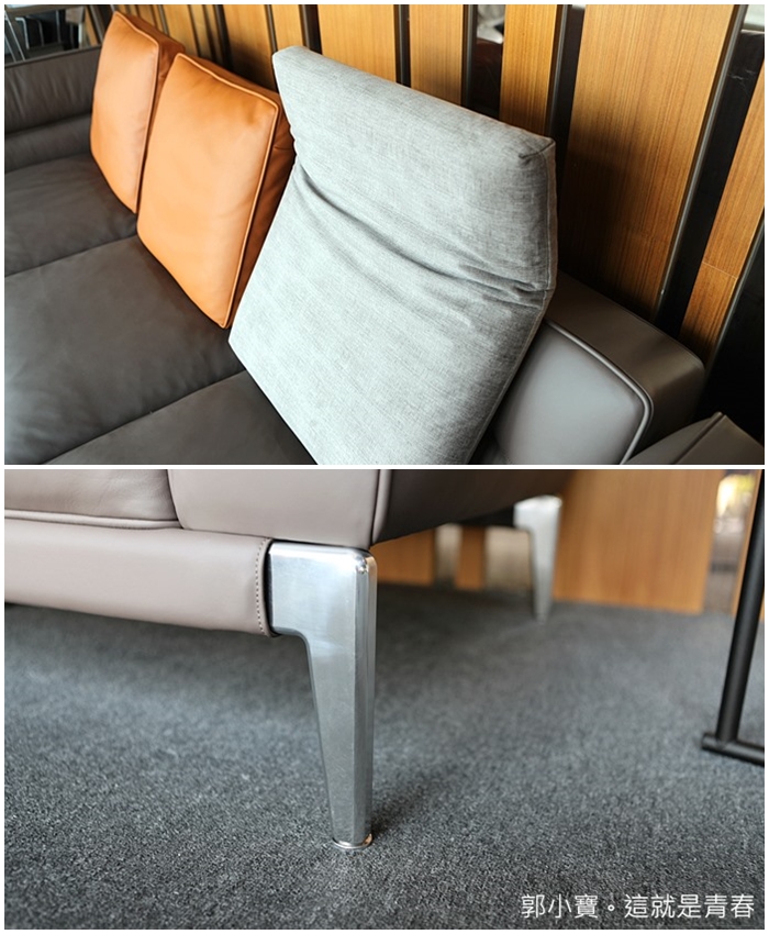 | 這一張沙發是經典復刻沙發,一體成形的不銹鋼實心椅腳非常有質感,搭配抱枕及靠枕時尚感大加分,斜邊設計的手靠邊我也超喜歡,一整個就是落落大方。 |