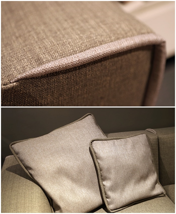 | 同樣三加一的沙發,但是單一的部分是比較長的,可以併成L型沙發,變化度較超高以外,這一張沙發的水餃邊就縫得很漂亮,是我最喜歡的水餃邊質感,沙發高度較低,坐起來的舒適度也相當不錯,抱枕是屬於軟抱枕,這抱枕也比較少見。 |