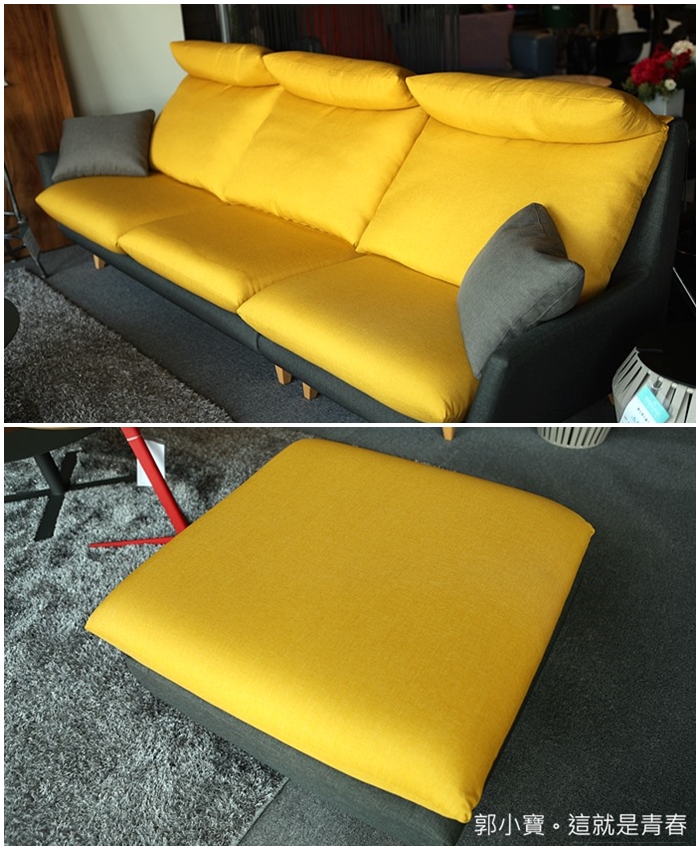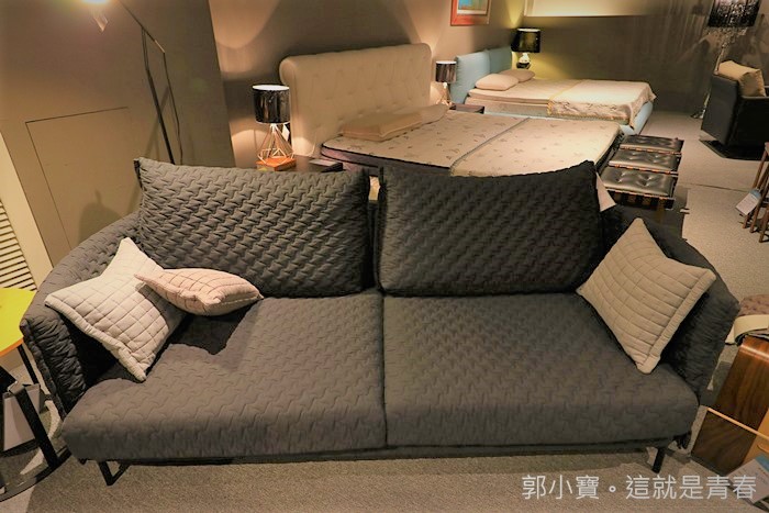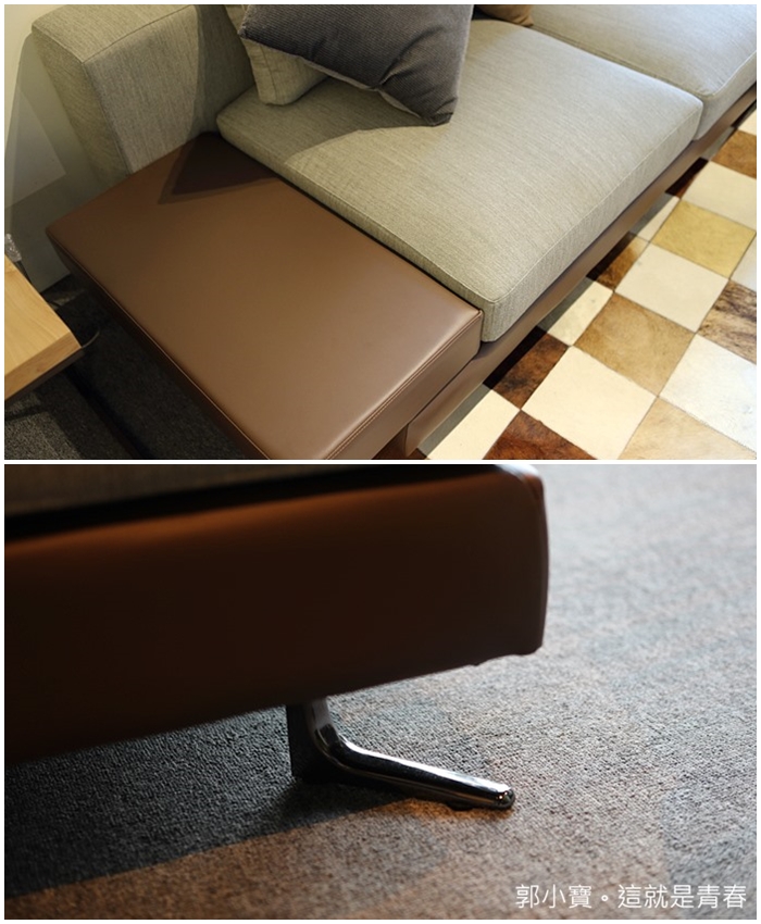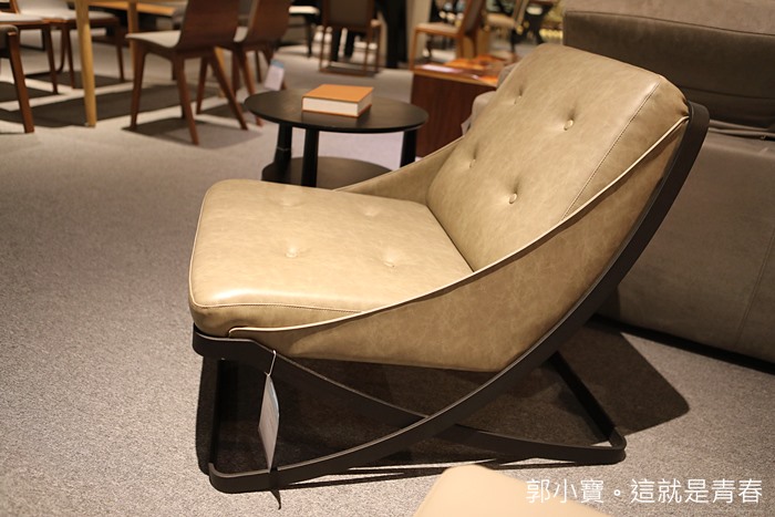 | 比較特別的單椅沙發還有靠墊,這樣的腳椅設計真的比較少見,不知道是不是因為這幾年很流行掃地機器人,這次看到的沙發全部的腳椅都有一定的高度,似乎是為了方便掃地機器人進出,不過椅腳的高度都可以讓消費者自己決定調整。 |