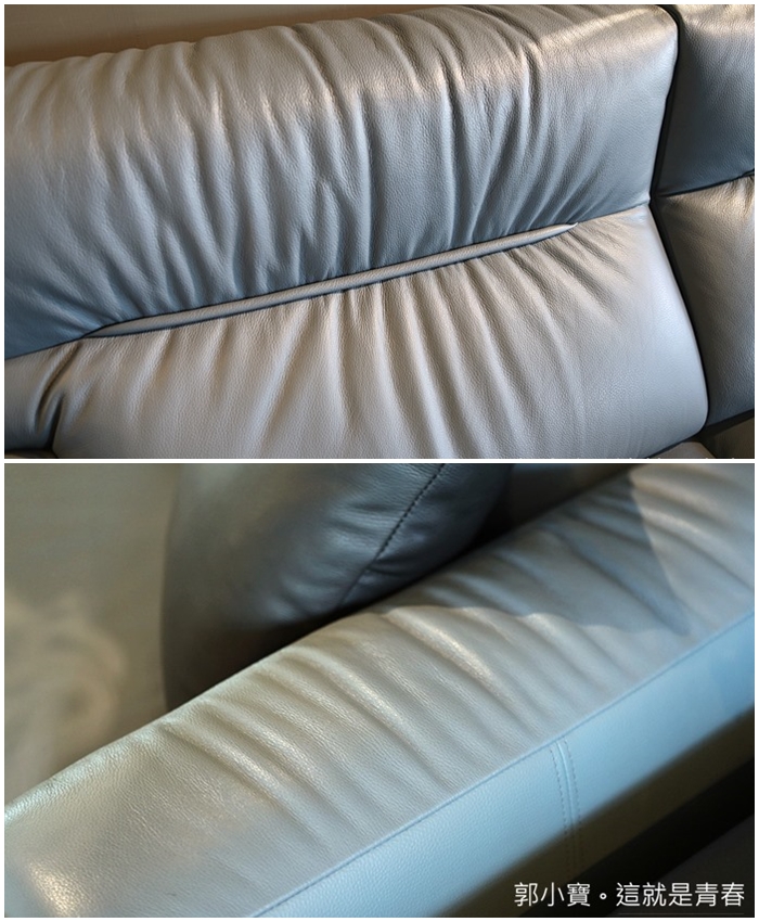 | 半牛皮的沙發也是很多人的選擇,價位上也相對的划算很多,比較特別的是這一張半牛皮的質感看起來也非常不錯,而且不管在椅背上還是扶手上都特意設計成抓皺的皮面,這幾年很多人都指定要有抓皺的視覺感。 |