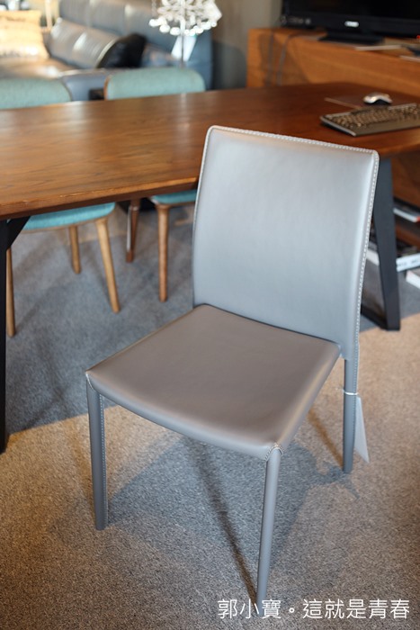 | 這一張餐椅超便宜的,依然是很受歡迎的抓皺設計在椅背上,讓餐椅也可以有質感跟設計感,灰色的牛皮讓整體的氣質大大加分。 |
