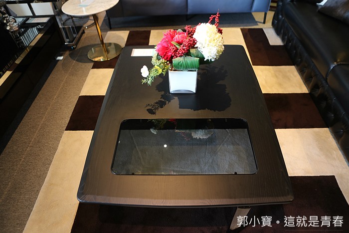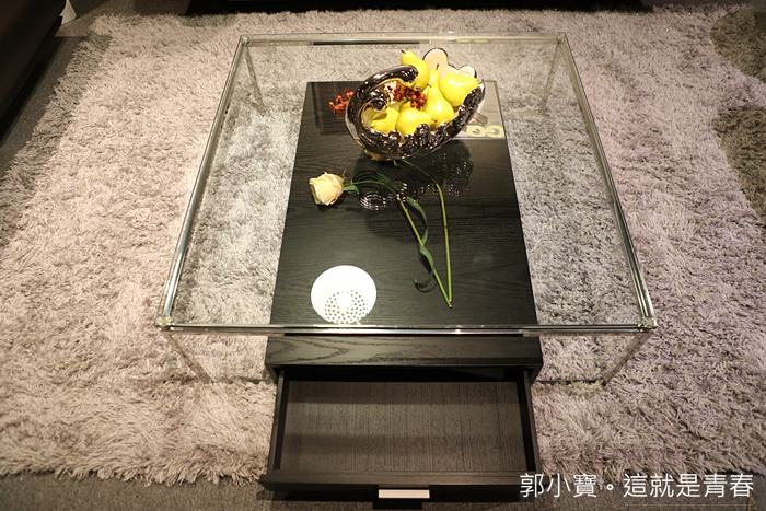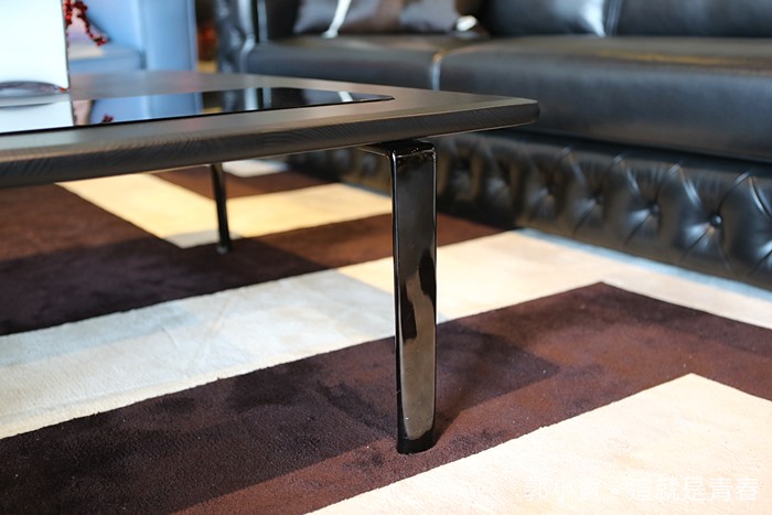 | 鋼琴烤漆的桌腳一看就是高級,質感往上翻了好幾圈,桌面上的半透明玻璃設計也很討喜,我跟老婆還開玩笑說下面放個魚缸,還可以看到底下的金魚游泳,這樣的設計讓原本較單調的長型茶几多了很多趣味性跟設計款。 |