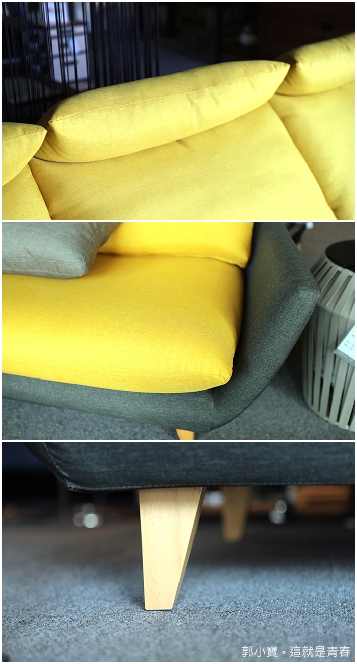 | 全部的商品我最喜歡的就是這一張沙發,一整個超中我的點,實在太漂亮了,連我老婆也覺得這沙發超好看的,不僅時尚大方以外,質感一整個就是沒話說,坐起來非常的舒服,靠枕剛好支撐著頸部非常舒服,曲線的弧度也顯得非常有質感,搭配木角那整張沙發的溫暖度大大提升,非常典雅的設計。 |
