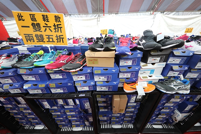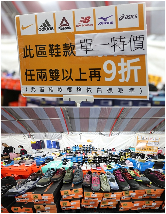 現場的球鞋品牌也是我看過陣容最堅強的,從Nike、adidas、Puma、asics、New Balance、Fila、Reebok、MIZUNO還有其他球鞋品牌通通都可以在這邊找到,另外還有台灣手工製造的富發鞋品牌也有,很受到很多人推崇的台灣品牌,這次通通出清要讓你便宜帶回家!!!