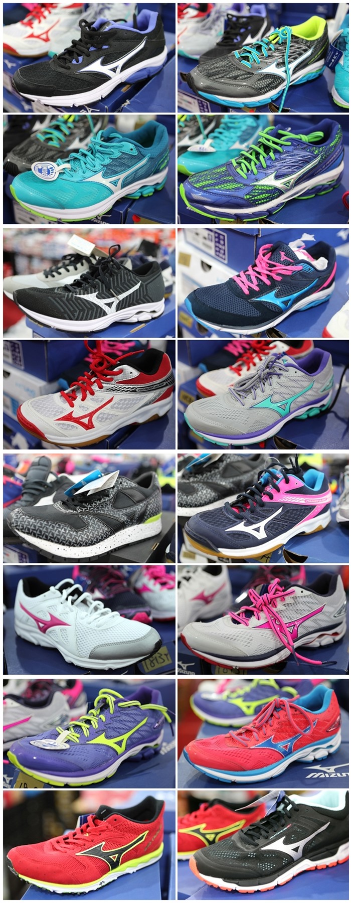| 這一區的鞋款跟設計明顯較新許多,且尺碼也較多一點,以美津濃來說,有幾雙都是很認門的跑鞋款都可以在這邊找到,但是當天我好像沒有看到皇速的鞋款,因為款式真的太多了,拍到我的手都痠了,有常在買鞋或是在體育用品店工作過的朋友都知道,六折通常都是員工價了,五折就真的超殺,加上這些都是知名品牌,所以老闆真的很有誠意! |