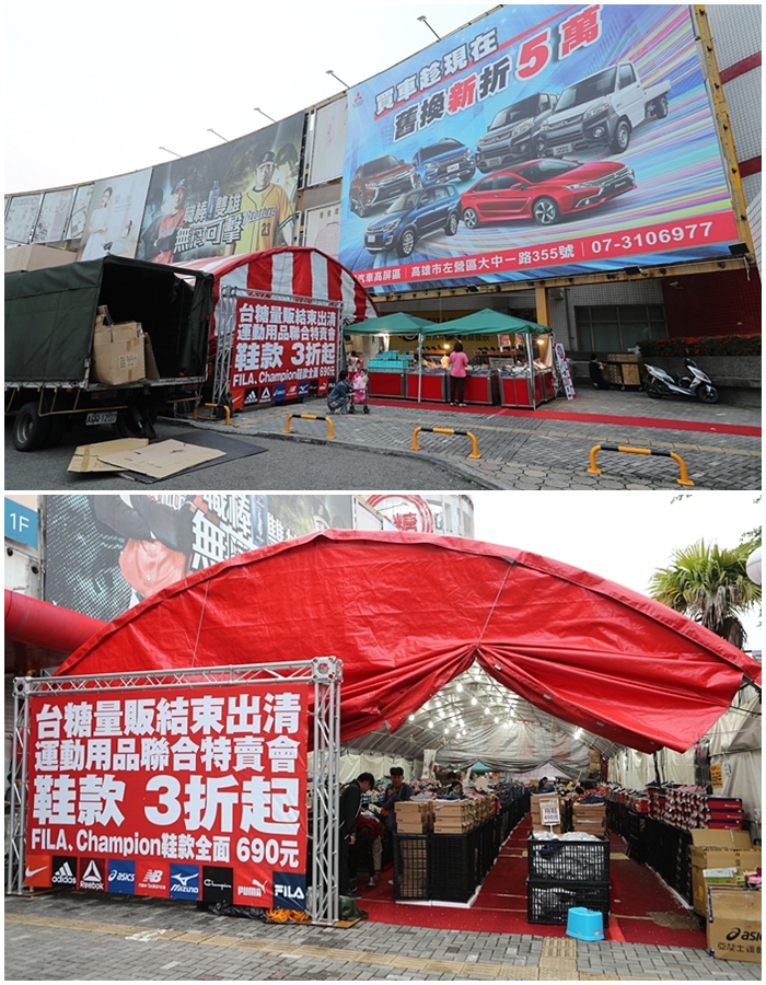 這要要分享的就是楠梓台糖量販的品牌球鞋款商也索幸把全部的鞋款搬出來清倉特賣,決定一雙不停的回饋給楠梓的朋友們,就在量販店外的空地上,這一大區全部滿滿的品牌球鞋,現場看超過上千種的鞋子款式任你挑!!