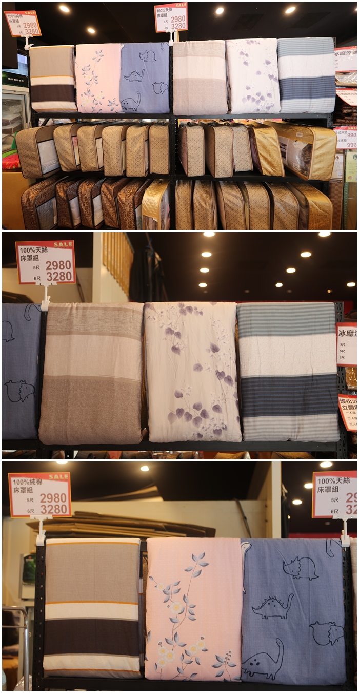 | 還有冰麻涼絲蓆也很受歡迎,最低699的價格就可以帶回家消暑一番,乳膠床墊等等的商品歡迎大家來比價,除了很多簡易床電的商品以外還有保潔墊這邊也破天荒的出清價超低價拋售,多利寶寢具年度八德地區拋售價格不買真的會後悔,推薦大家一定要親自帶場摸摸它的質感,感受一下布料的材質跟親膚性,絕對能讓你滿意的帶回家! |