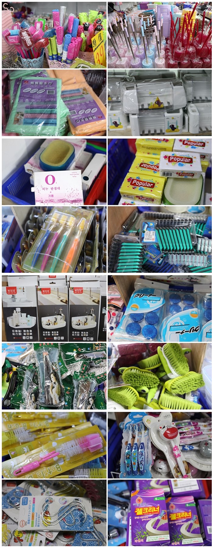 | 浴室需要的商品也相當的多,大人跟兒童牙刷通通都有,兒童牙刷超可愛的,而且牙刷都是一整組才賣39元,還有吸水毛巾我買好幾條了,因為太便宜吸水力又強,所以我都拿去當擦車布也不心疼,一整組包裝的馬桶清潔碇一樣只賣39元。 |