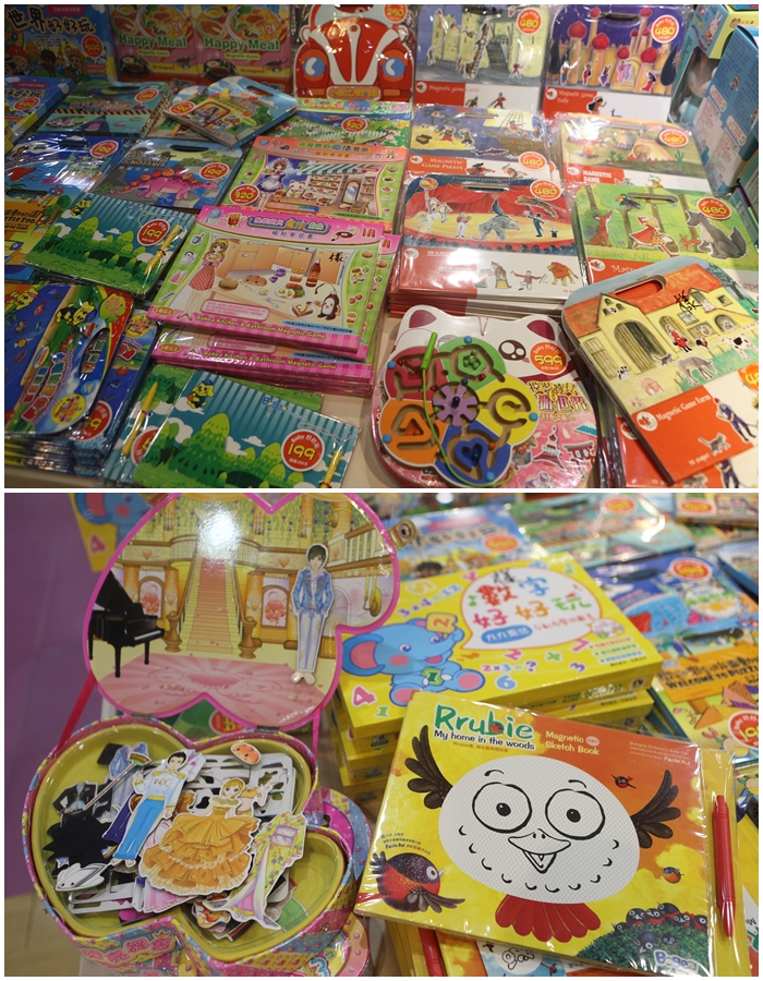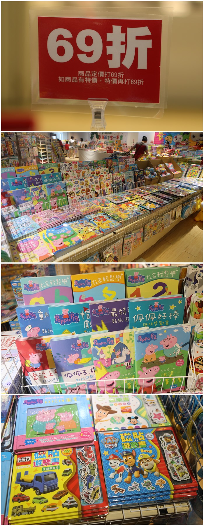 | 各式各樣的明星卡通的畫筆書,不管是有色鉛筆還是水彩或者蠟筆通通都可以在這一區找到,價格也非常划算,本身就不貴的系列商品再打69折真的很好敗,還有磁貼版也是很多小小孩的最愛,我們家女兒現在就是玩磁貼版的年紀,數字跟英文字母都是小朋友的基本入門款。 |