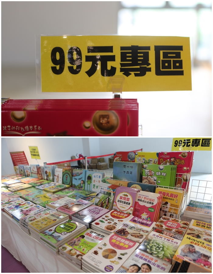 | 這次還多了99元專區,不只童書還有一些大人可以看的書籍,有一些其他的食譜根養身輸及,大多都是居家類的書籍居多,另外還有出清的童書及開展大圖認知書也很受歡迎,真的非常好挑。 |