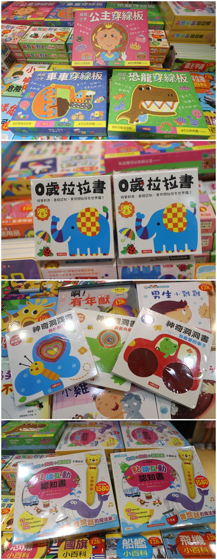 | 這次人類文化的商品線非常齊全,除了熱賣的穿線版以外,還有0歲的拉拉書也是招牌商品,洞洞書這幾年很多出版社也都有推出不一樣的系列,其中最多人搶購的就是他們家的點讀互動書,一整套的點讀互動筆只要990元就可以帶回家,真的非常划算! |