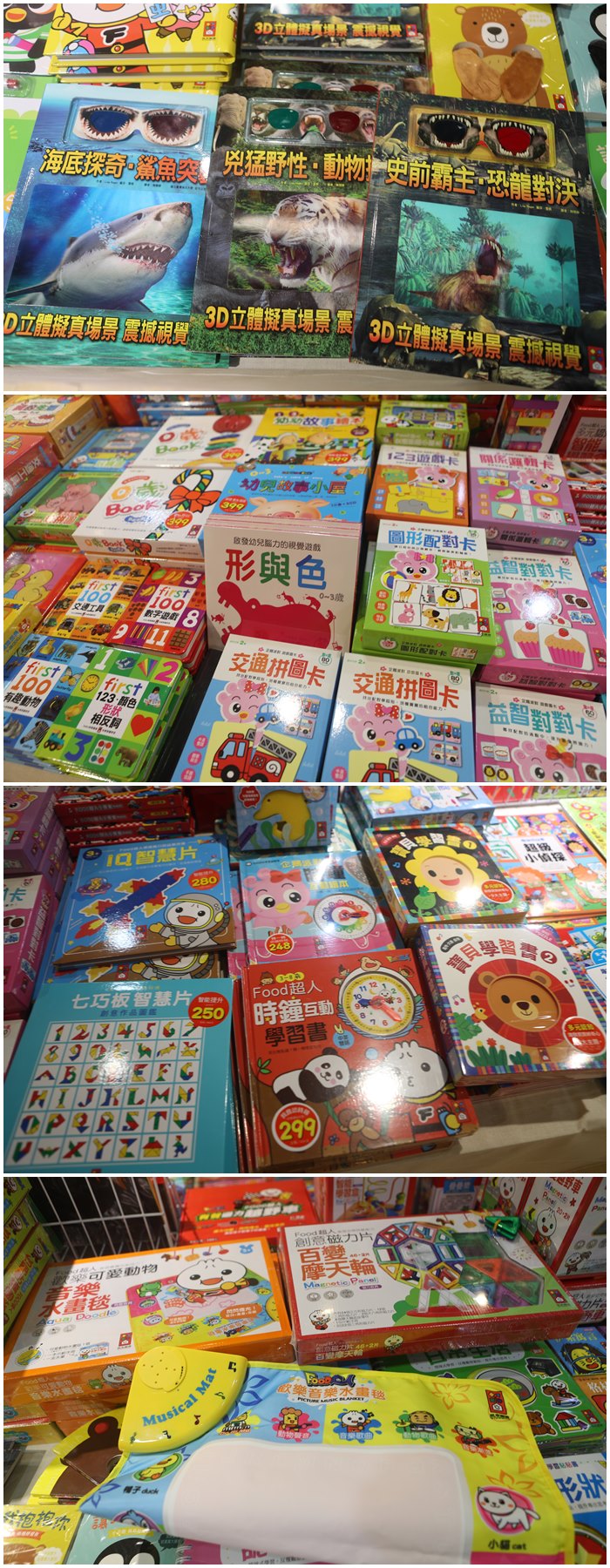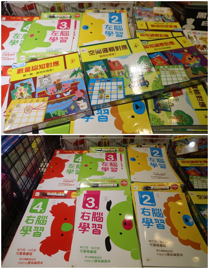 超多小朋友需要的練習本通通都可以在這邊找到,不管妳要迷宮書還是加減法、英文練習書等等都可以在這邊找到,這一區也是家長必逛必入手的區域,我每次都會湊滿10本,因為練習書真的很重要阿XD