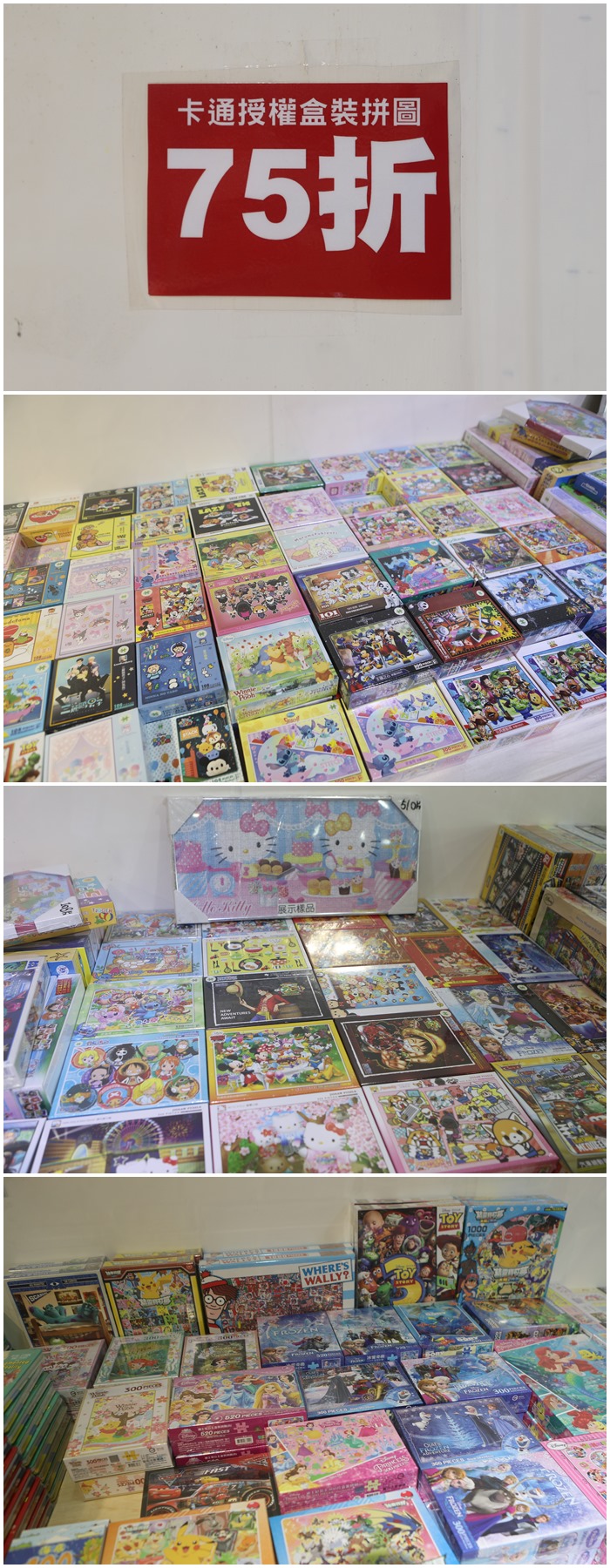 這一區超大的專區都是拼圖,除了拼圖以外還有外框也都有販售,裱框的尺寸也都是根拼圖可以搭配一整套的,但是我忘記了這一個專區是不是根華的商品,因為根華也出了很多拼圖,但是這一批的批圖似乎很多都是比較屬於大朋友的。