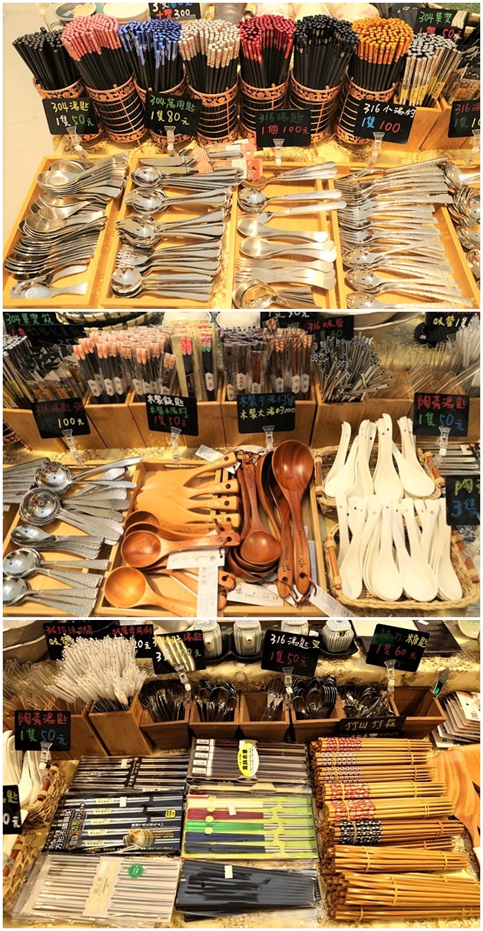 | 除了合金筷以外,現場還有很多木製筷非常具有和風感,骨瓷湯勺還是木製鍋鏟通通都可以在這邊找到,價位真的跟一般市面上專櫃差非常多,讓你通通在百元內就可以入手帶回家使用,品質都非常好! |