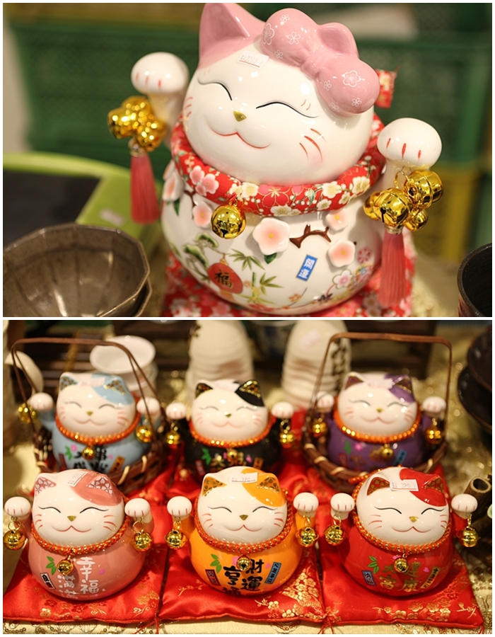 | 現場也超多招財貓的陶瓷品,大大小小通通都有,招財貓真的很可愛,很多人看到招財貓都很容易手滑敗家,那你就更要趁著藝江南的破盤價趕緊來搶一波!! |
