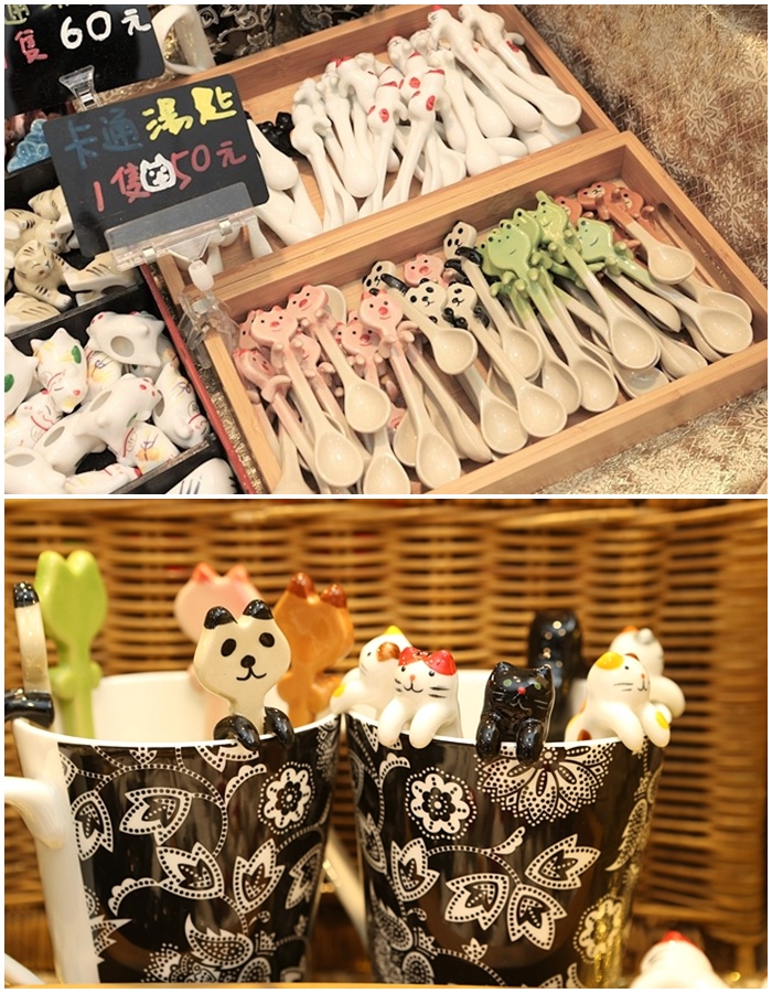 超可愛的卡通吊掛陶瓷湯匙有兩種價位,分別是一隻50跟一隻60元兩種,超多可愛的貓咪跟熊貓等動物,這系列我家也買好幾款,每次老婆泡奶茶還是咖啡都會說好口愛,搭配它的櫻花陶瓷杯,每天喝飲料對她來說是一種享受!!! |