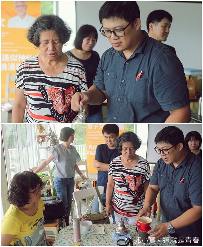 | 瞬間整間教室充滿了歡樂跟咖啡香,業者們彼此交換心得真的很重要,我必須老實說桃園市政府這民宿管家學校真的很重要,除了認同民宿業者以外,更是努力扶持每一個在桃園的民宿業者,盡可能的幫助這些業者或是想在桃園開民宿的人。 |