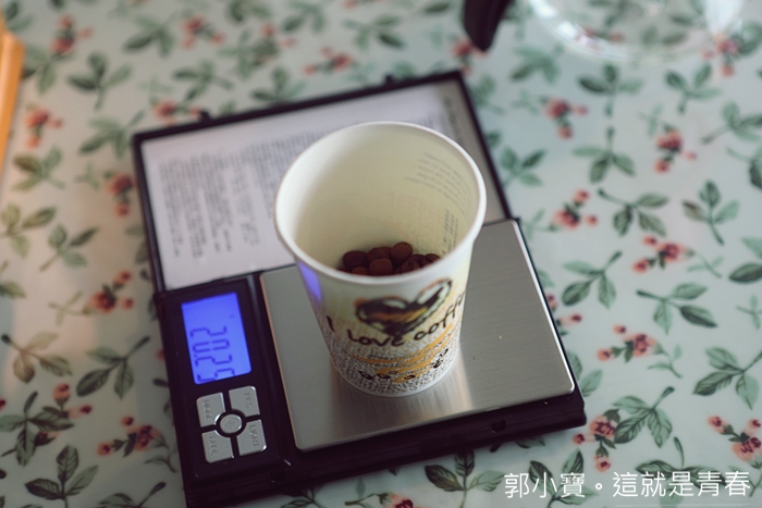 | 先秤出每一杯咖啡所需要的咖啡豆重量後再放到研磨機裡面,一整個就是完美比例的做法,只要照著這些步驟一步一步來,沖煮出來的咖啡絕對有一定的水準阿XD |