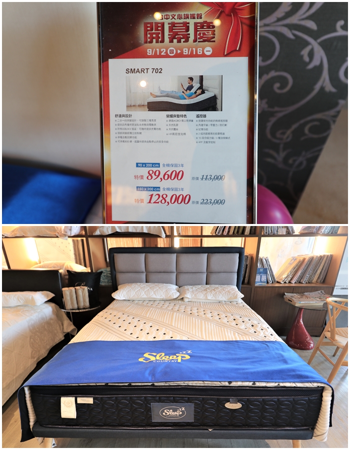 睡眠王國內湖館真的超大一間,睡眠王國內湖館本身外面就有屬於專屬停車場,睡眠國王內湖館場地非常大,所以擺設體驗的床墊有非常多的品牌跟款式,內湖南港汐止的朋友真的可以趁著這一次慶祝文心旗艦店開幕全台同慶的好機會換床墊,手刀來這邊參考看看。