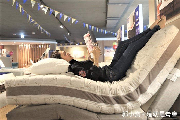 被稱為床墊最終極的武器,床墊不只是床墊,而且還可以依照自己最舒服的方式調整,甚至可以像是按摩椅一般斜躺看書,看完書攤平後就是床墊,如果搭配液晶銀幕還有放鬆心靈的按摩功能,聽著美妙的音樂跟大自然的聲音,隨著電動床的高低擺動,我瞬間就睡死了,真的是太妙。 |