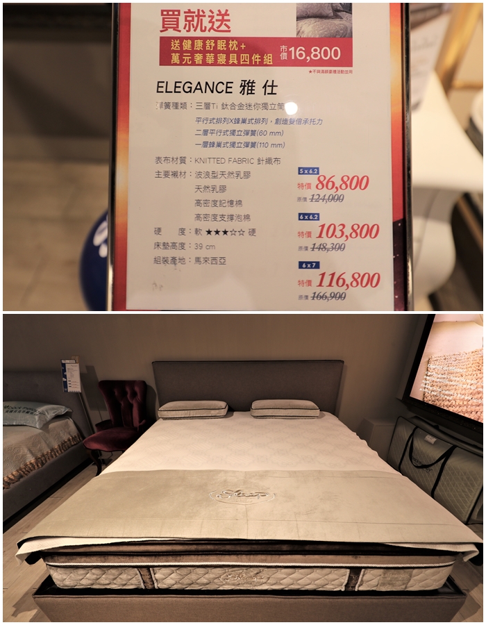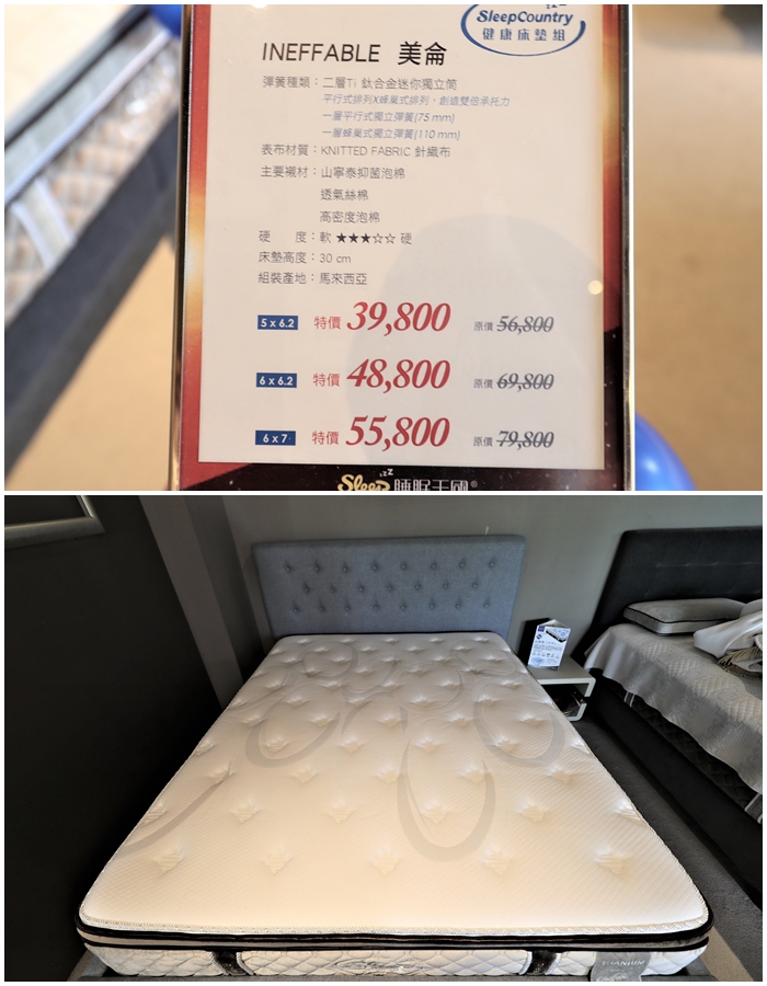 這一張睡眠王國推出的先鋒床墊是我個人下一次要買床墊的目標,看看這小尺寸的獨立彈簧整整四大片,讓你躺在床上每一個點都是雙倍的支撐力,緊緊的包覆整個身體,我試躺了一下這三款床墊都是屬於軟硬適中,是我個人目前躺過那麼多床店裏面支撐力最好的床墊了,因為獨家專利的四層彈簧讓每個支撐都可以平均,超過1萬支Ti鈦合金迷你筒彈簧真的可以細微的感受到你每個轉身的支撐點,非常推薦的高價款。