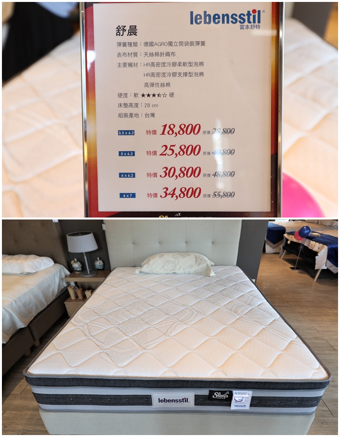 | 德國雷本舒特的床墊,如果夏天真的很怕熱的朋友可以選擇這一張床墊,因為這張床除了表布是使用TENCEL天絲棉針織布以外,主要她的床墊全部都是使用水冷膠及HR高密度冷膠泡棉,所以躺起來是我覺得裡面全部特賣的床墊最涼爽的。 |