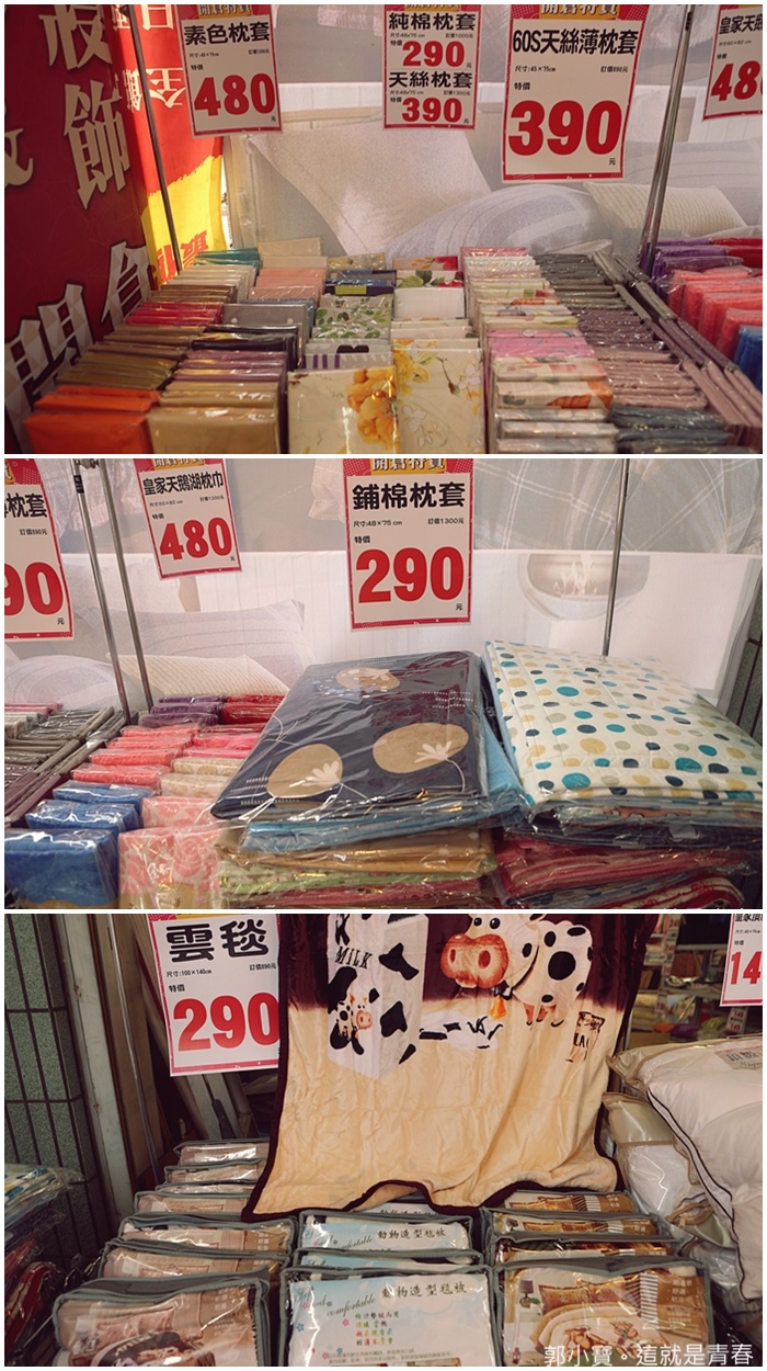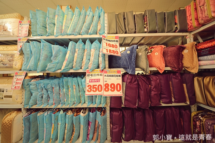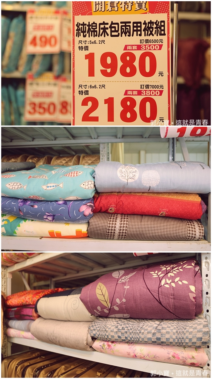 接下來再跟大家分享棉被區,冬天一到棉被就真的變得非常重要了,這次棉被商品也飾應有盡有,真的是直接開倉把全部的商品都送過來了。