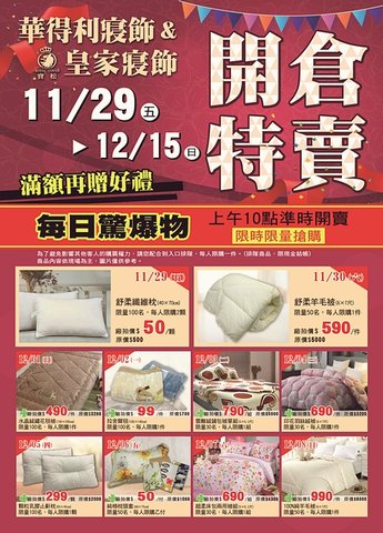 台灣大廠跟大品牌聯手在大甲地區最年度開倉出清,華得利寢飾、皇家寢飾還有寶松都是台灣前三名的大廠,尤其挾帶著本身就是工廠的原因,所以價格優勢本來就很高,這次通通都要回饋給當地的朋友,地點就在新政路上,旁邊就是文昌停車場,非常方便的地點,這一檔是我特賣會跑那麼多以來,商品最豐富價格最划算的一檔了,不衝一波真的太可惜。 |