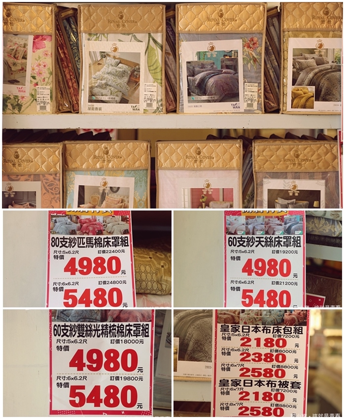 | 門口這一區就是比較頂級的床罩跟床包組,但是相對於同等級的價位相比這次真的下殺的很狂,想用便宜價格入手奢華寢飾的朋友趕緊衝一波。 |