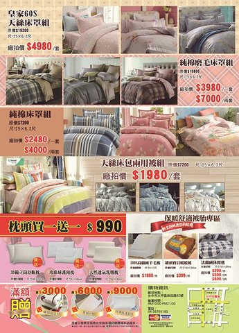 | 同樣天絲系列也有準備床包組,床包組單價也殺到1980元,不到2000就讓你帶回家,這一檔的寢飾特賣會價格真的很狂! |