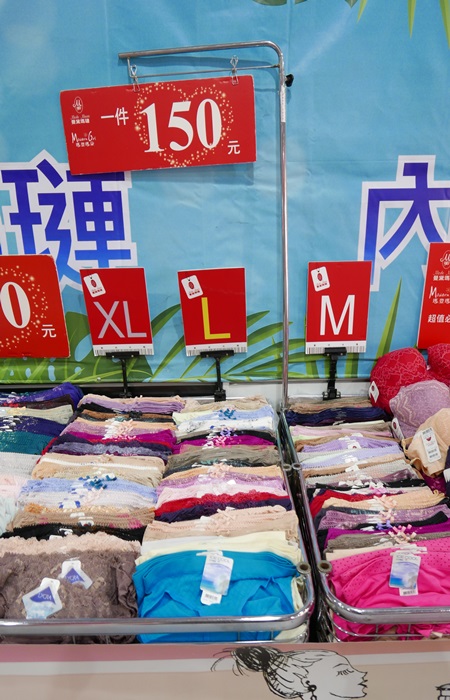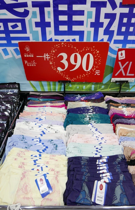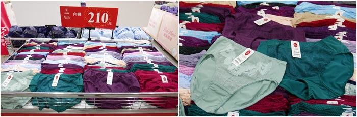 這區與內衣單件500元可成套搭配,現場備貨齊全,不管你是要平口還是低腰的小褲通通都有,顏色選擇性也非常多以外,曼黛瑪璉的小褲穿起來非常舒服,不會有勒感,小褲上面的蕾絲也很漂亮,建議搭配成套一起買會比較划算。