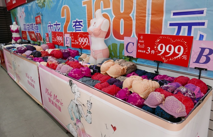 3件999元的價格超值到不入手對不起自己,款式真的超多備貨超齊全,一整排的花車真的不誇張,這一區的內衣大多是零碼內衣居多,都是很好看的款式,很適合喜歡挖寶的女性朋友,這價位真的非常非常的划算。 |