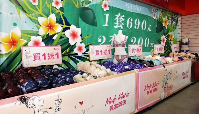 花車超多台的很好買,款式也是多到一個眼花撩亂的地步,曼黛瑪璉的蕾絲做工非常細緻,裡面也有很多女性朋友喜歡的無鋼圈內衣,在家裡面穿起來就是舒服,搭配小褲一套只要690元就可以帶回家,直接挑選兩套1200元更划算,真的要親自走上一趟好好地挑選一下。 |