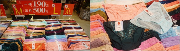 這區與內衣單件500元可成套搭配,現場備貨齊全,不管你是要平口還是低腰的小褲通通都有,顏色選擇性也非常多以外,曼黛瑪璉的小褲穿起來非常舒服,不會有勒感,小褲上面的蕾絲也很漂亮,建議搭配成套一起買會比較划算。