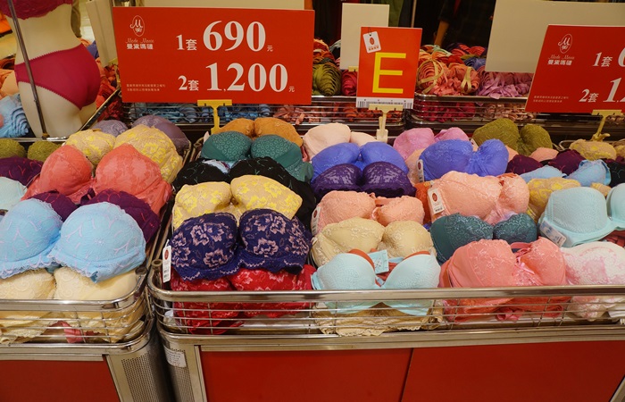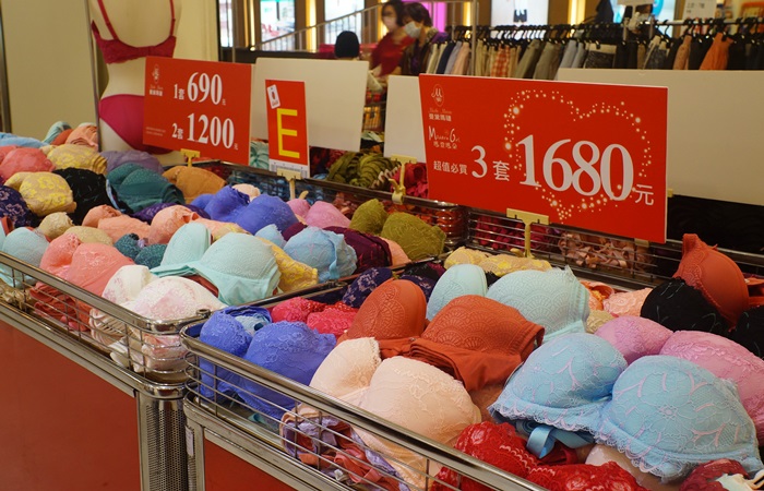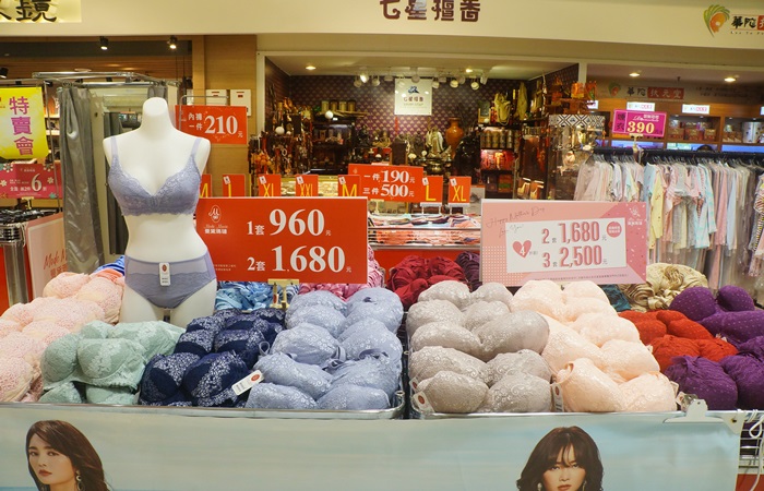 花車超多台的很好買,款式也是多到一個眼花撩亂的地步,曼黛瑪璉的蕾絲做工非常細緻,裡面也有很多女性朋友喜歡的無鋼圈內衣,在家裡面穿起來就是舒服,搭配小褲一套只要690就可以帶回家,直接挑選兩套1200更划算,這樣的價格真的要約多一點人一起來採買,炎熱的高雄,女生朋友最需要的涼感內衣也可以在這邊入手,真的要親自走上一趟好好地挑選一下,這一區可以自由搭配任選非常好買。