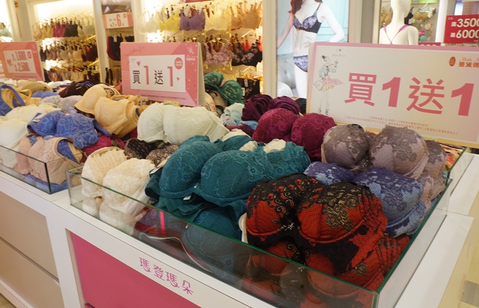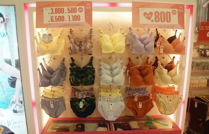 眾多新款掛在牆上,望眼看過去全部整套整套的展示,美麗的內衣就會使人心情愉悅,是不是每套都想要試穿看看?現在正品都有活動喔!滿3800元折500元,滿6500元折1100元,是不是超划算! |