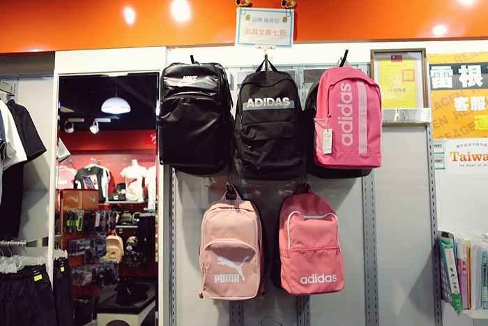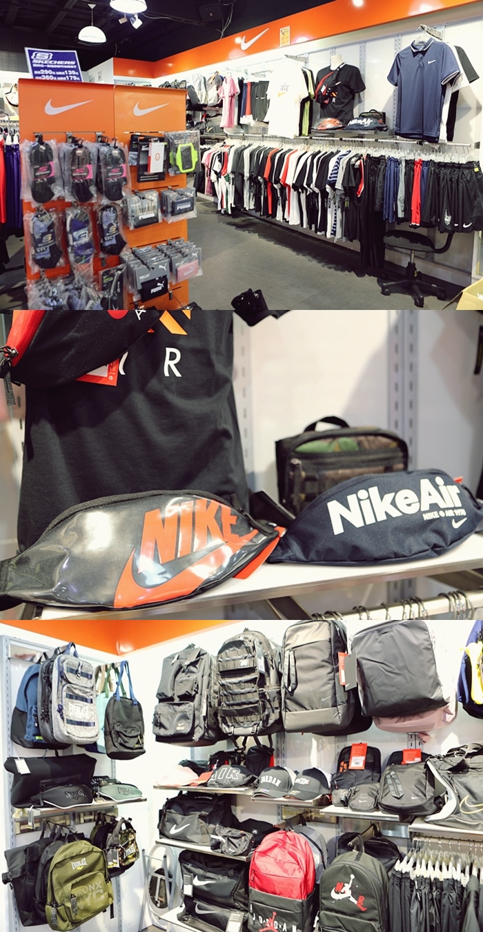 | NIKE專區的商品也很多,光是包包的款式就琳瑯滿目,腰包、後背包、籃球包等等通通都有,全店任何商品都可以任選任挑搭配滿額活動。 |