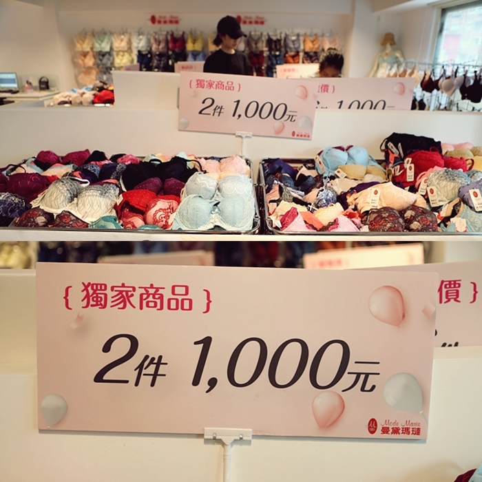 | 這一區真的很推薦,因為買越多越划算,所以一定要約多幾個姊妹一起入手最划算,這一區的內衣款式最豐富以外,還有很多曼黛瑪璉的招牌款式及最熱賣的款式這次也都通通有在這區域裡面,買到真的賺到。 |