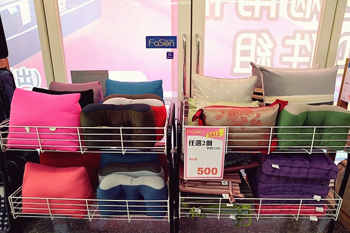 | 靠枕兩個500元也真的是很誇張的價格,這一區裡面除了靠枕以外還有抱枕,任選兩個只要500元,真的很值得入手。 |