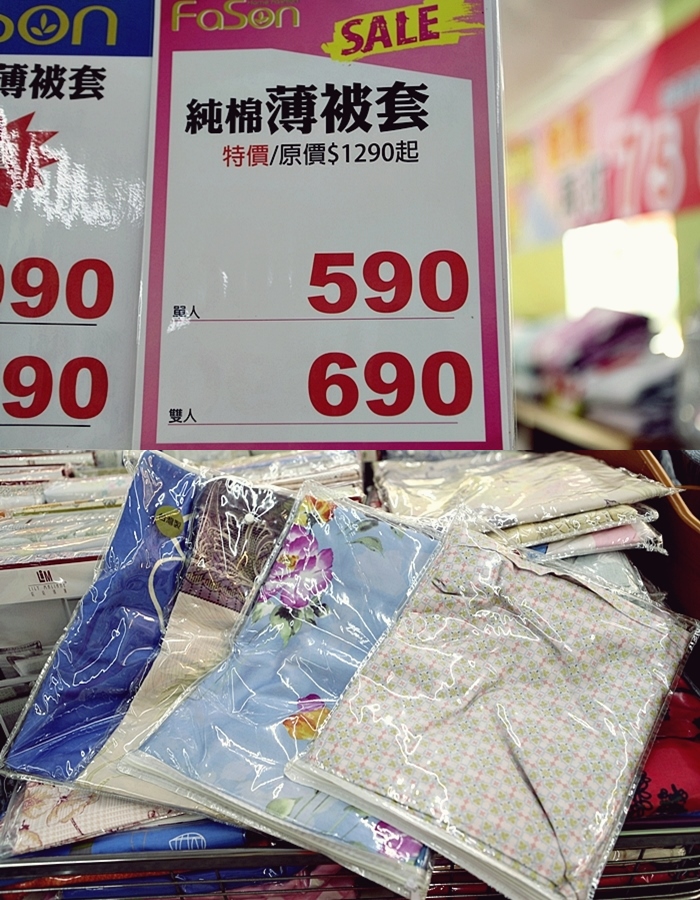 夏天必備的薄被套,有雙人也有單人的薄被套,幾乎都是五折以下的價格出清。 |
