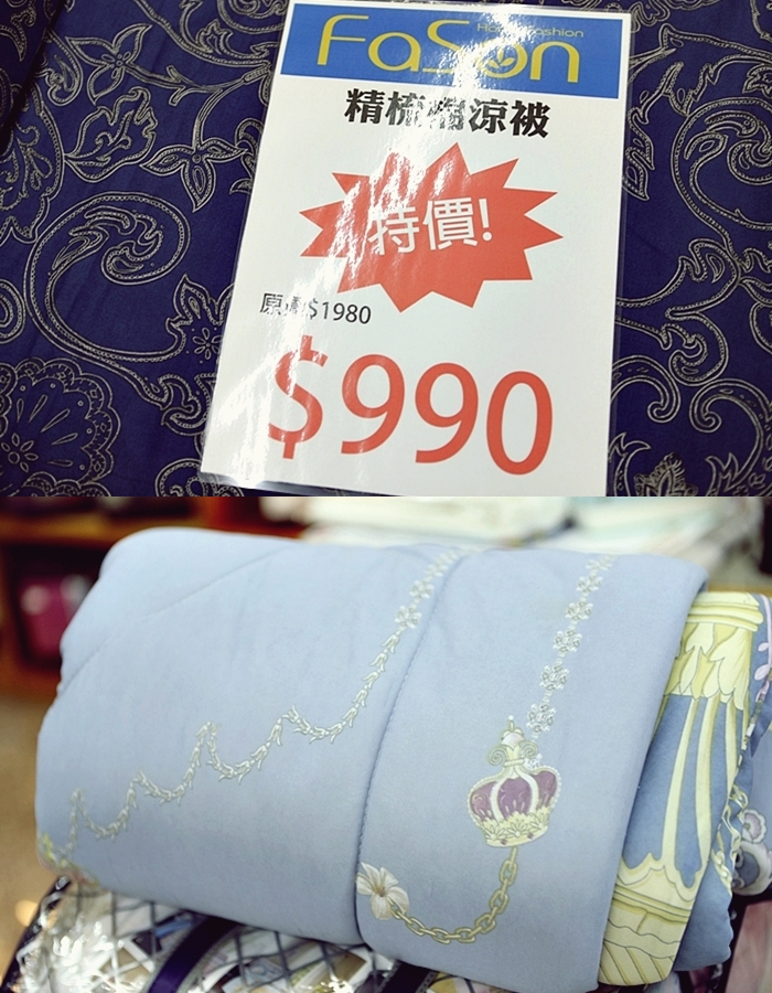 | 後方還有冬天的棉被區,雖然現在還不到冬天的季節,但是這邊的冬被價格也是直直落的殺下來,殺到最深處的價格了,趁現在買來今天過冬剛剛好。 |
