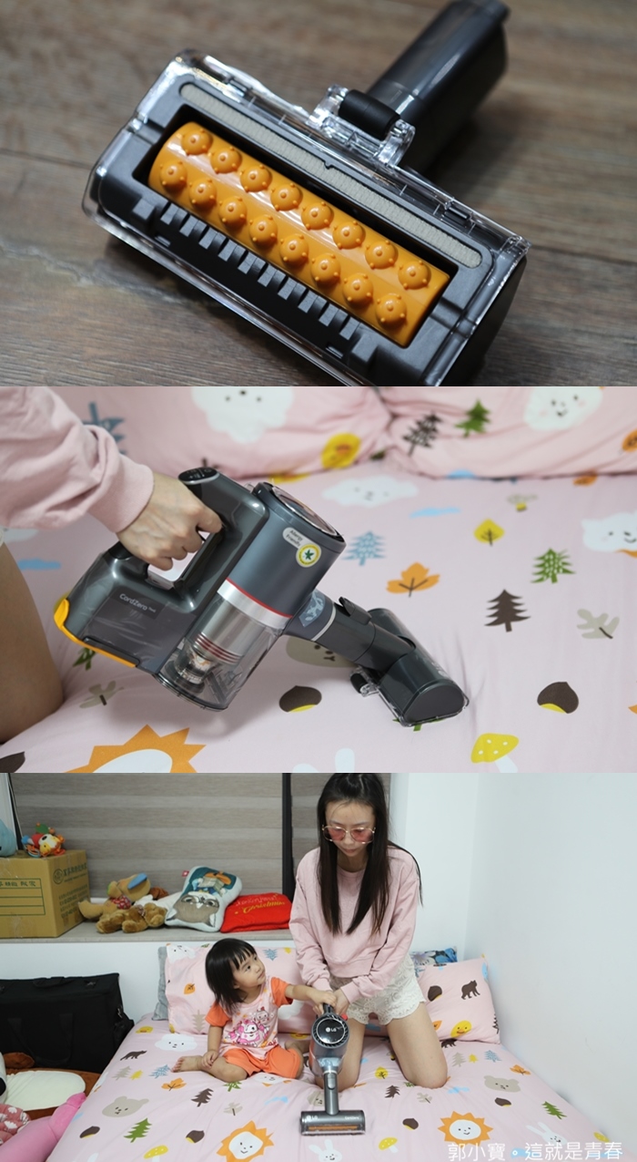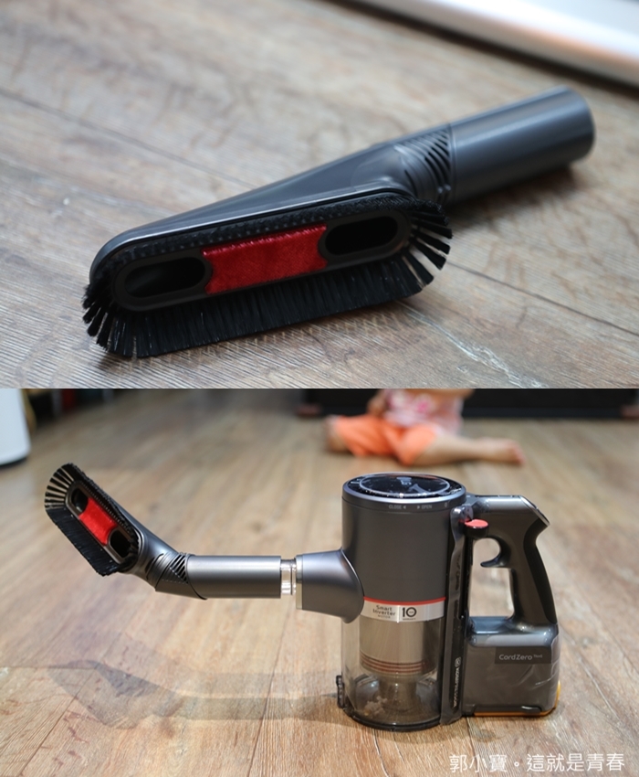 | 另外很重要的塵蟎吸頭,塵蟎吸頭我們都固定收在房間的抽屜裡面,通常只要拿主機進來安裝,A9K的吸力搭配塵蟎震動吸頭超好用,一機多用的設計就是讓人愛上她的主因,節省很多收納空間,我以前幾乎是一個功能就買一隻,而且自從有了Cola以後,這塵蟎吸頭就很常用,很多小朋友的過敏都是因為塵蟎的關係。 |