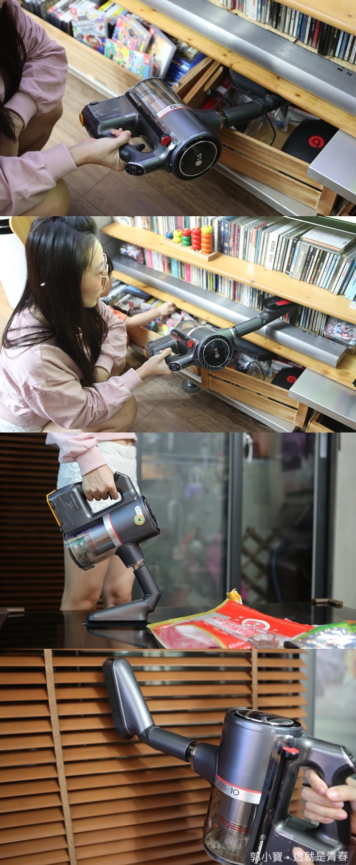 太妃興沖沖的跑去試了A9K的吸力,吸了一陣子回來後她說確實吸力比以前強上許多,因為以前在桌子縫隙裡面的餅乾屑都吸不上來,現在A9K就吸得上來了,而且馬達運轉的聲音也降低不少,以前強力運轉的聲音滿大聲的,現在強力運轉的聲音悶悶地降低不少,但是音量變小好不習慣,聽覺上感覺沒有很厲害的樣子XDDD