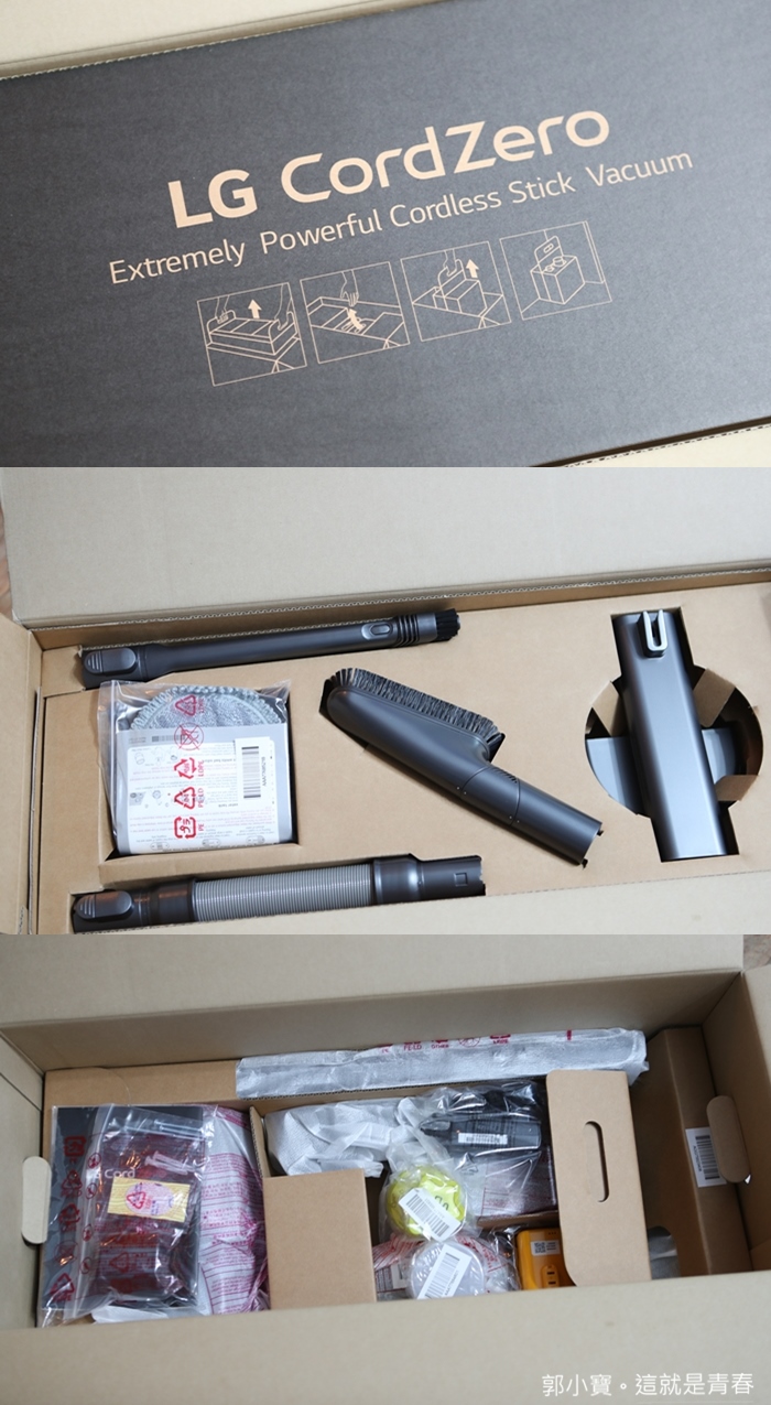 | A9k的外箱根以前A9+版本比起來超級大箱,一大箱相當的沉,現在市面上頂級的手持吸塵器大概就屬LG跟Dyson競爭最激烈了,但是我發現身邊的朋友都已經跳槽LGA9各系列,吸力每個人感受不同,我是覺得已經差不多了,但是貼心度跟好用度真的LG A9系列勝利到一個不要不要的XD |