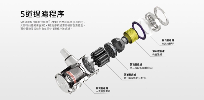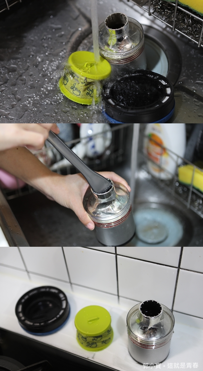 | 水洗氣旋濾網、微塵濾網、HEPA濾網可以用水清洗超方便,微塵濾網要確保風乾在使用,不然會有很奇怪的味道,金屬濾網也可以洗得一乾二淨,之前金屬濾網內部有時候水沖不掉,這次搭配贈送的小刷子可以刷的超乾淨,這樣細菌也不會累積在裡面孳生。 |