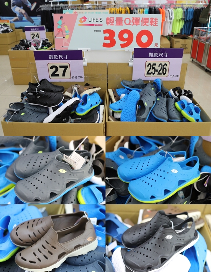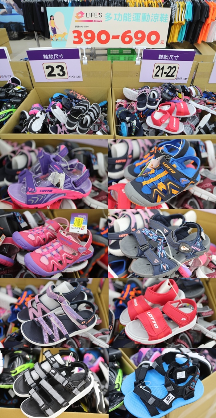 很多人詢問的運動涼鞋這次也有準備很多貨,有護趾跟運動涼鞋等各種款式很好挑,顏色也非常多,可以看到他們家這一區的涼鞋在鞋底的部分加厚許多。 |